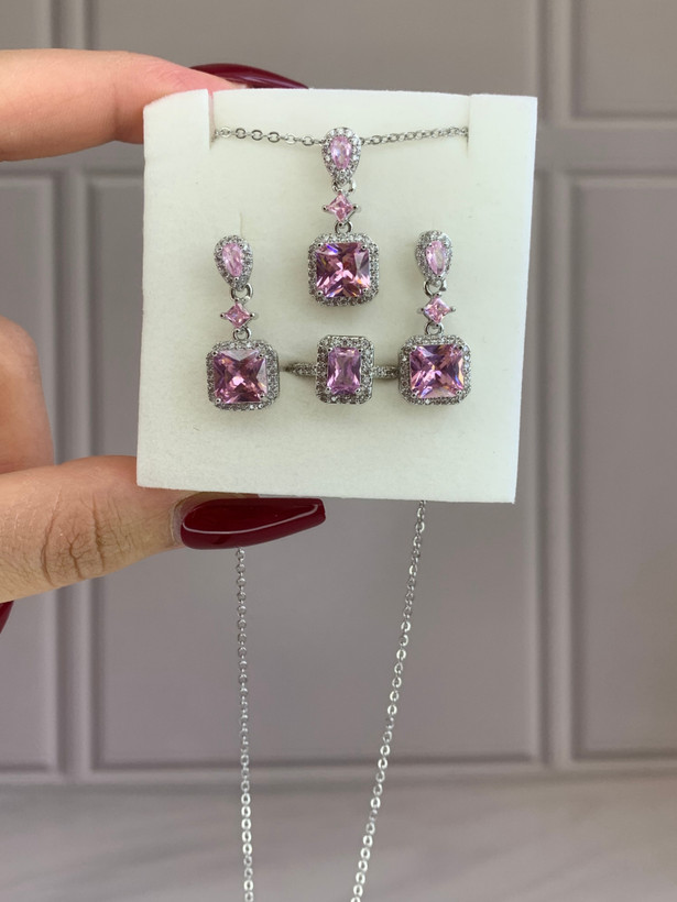 ست زیورآلات با نگین های صورتی درخشان،ترکیبی از ظرافت و شکوه انتخابی خاص برای درخشش شما در هر مناسبت🌷💗