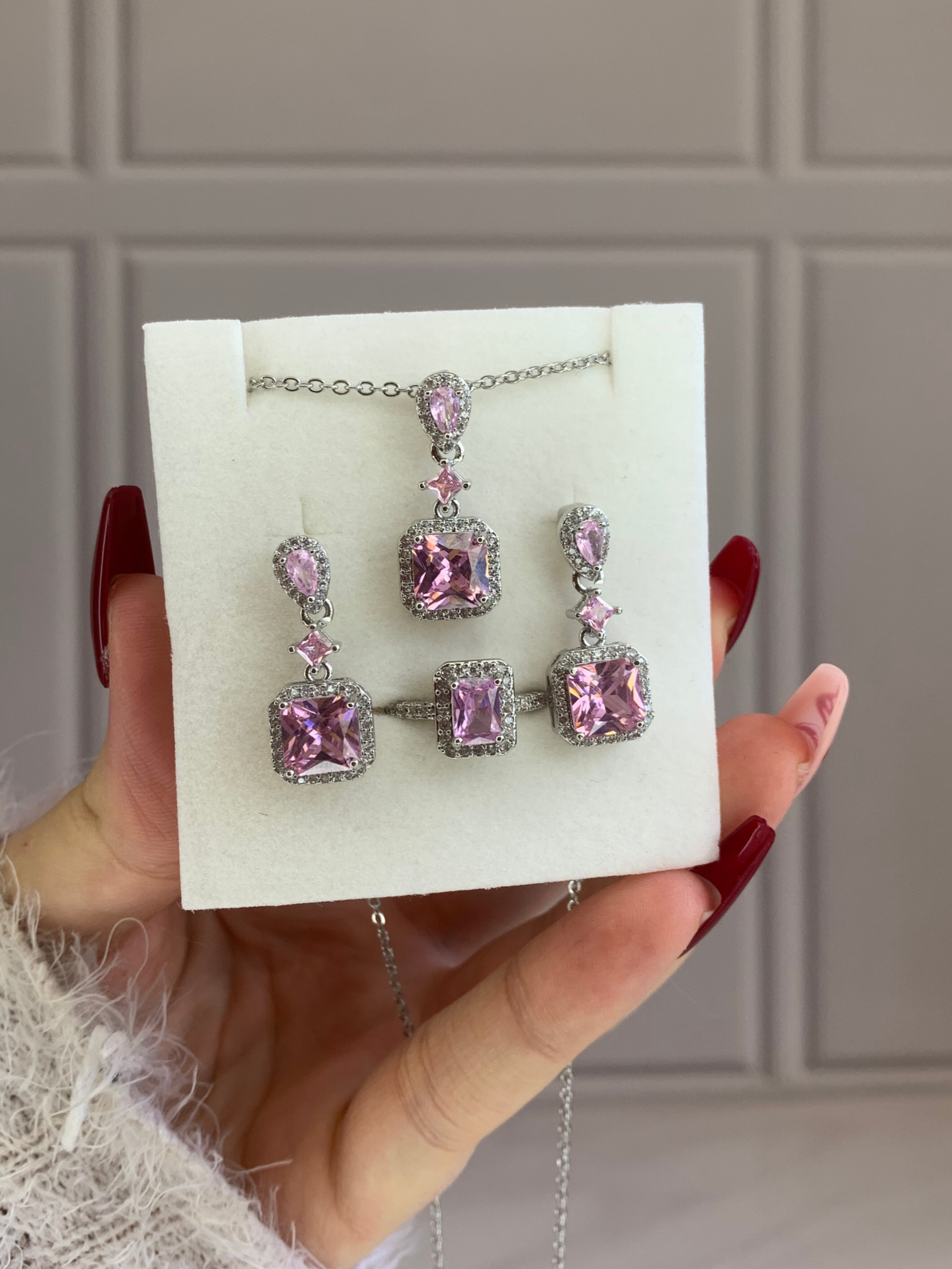 ست زیورآلات با نگین های صورتی درخشان،ترکیبی از ظرافت و شکوه انتخابی خاص برای درخشش شما در هر مناسبت🌷💗