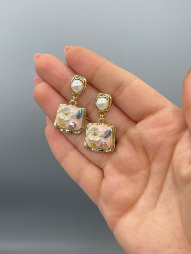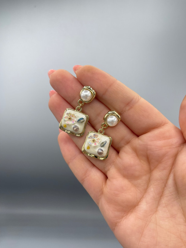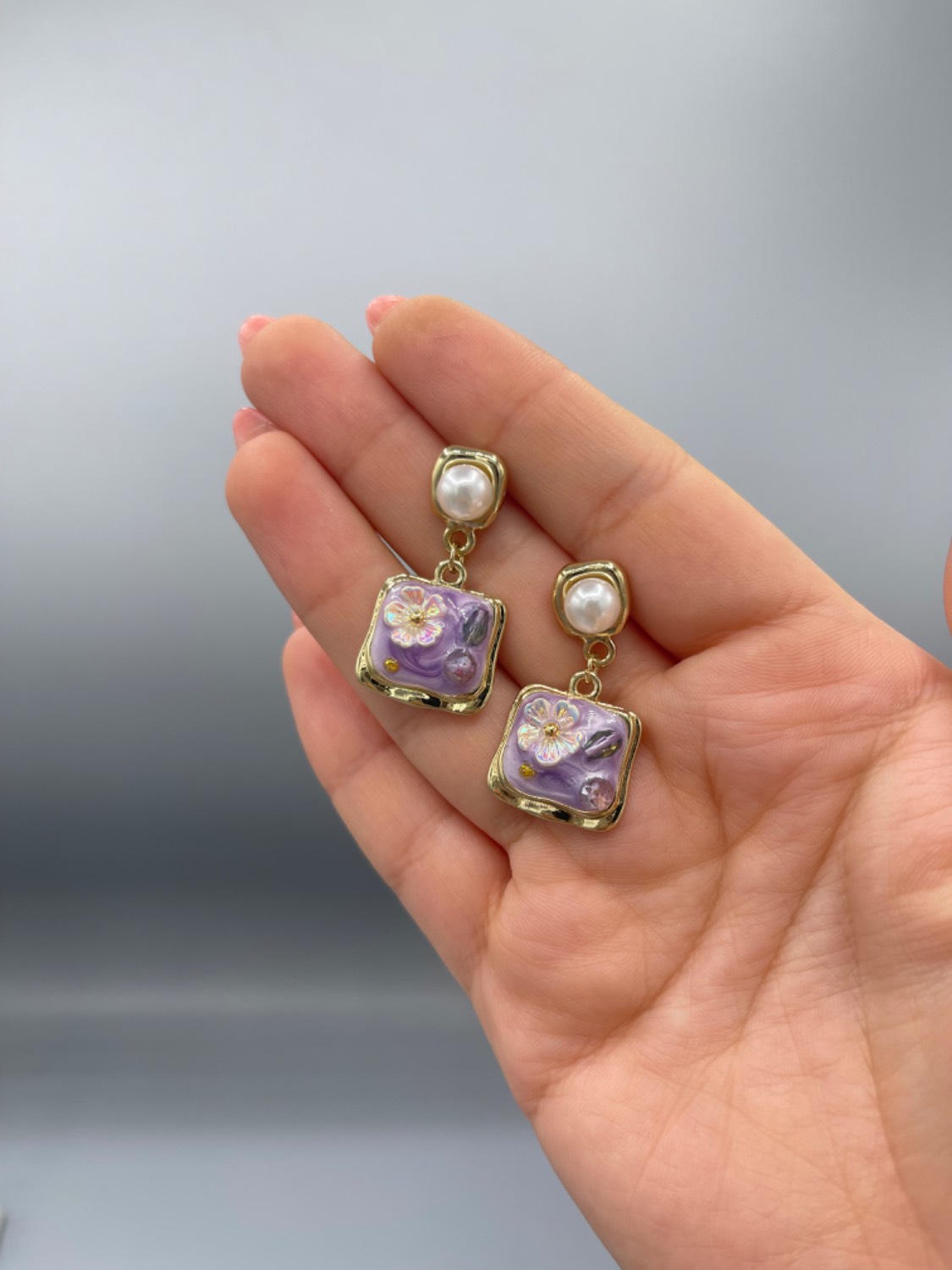گوشواره گلی میناکاری،ظریف،درخشان و چشم گیری