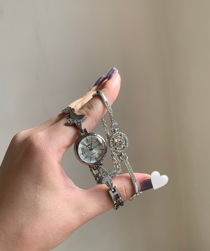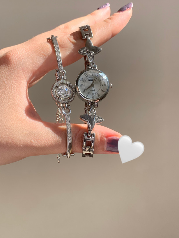 ست ساعت و دستبند زنانه سفید استیل رنگ ثابت مدل Time47 شیک و خاص
