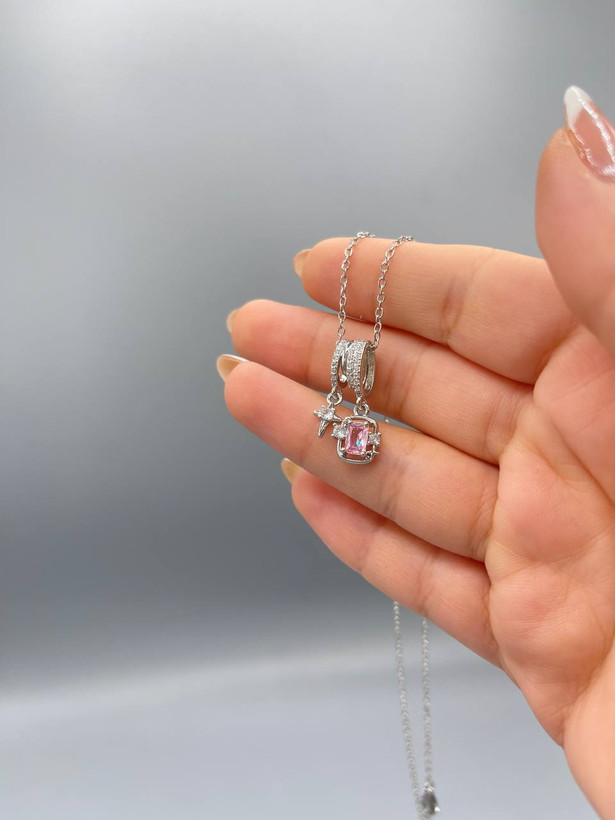 طراحی ظریف و مینیمال با نگین صورتی درخشان، مناسب برای استفاده روزمره و استایلهای خاص. ترکیب رنگ نقرهای و صورتی، حس لطافت و زیبایی رو بهخوبی منتقل میکنه.🌷💗