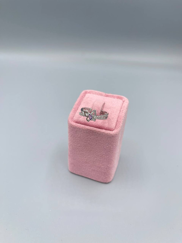 انگشتر استیل ظریف با طراحی پروانه و نگین بنفش. مقاوم در برابر تغییر رنگ، سبک و مناسب برای استفاده روزمره و هدیه.💜✨